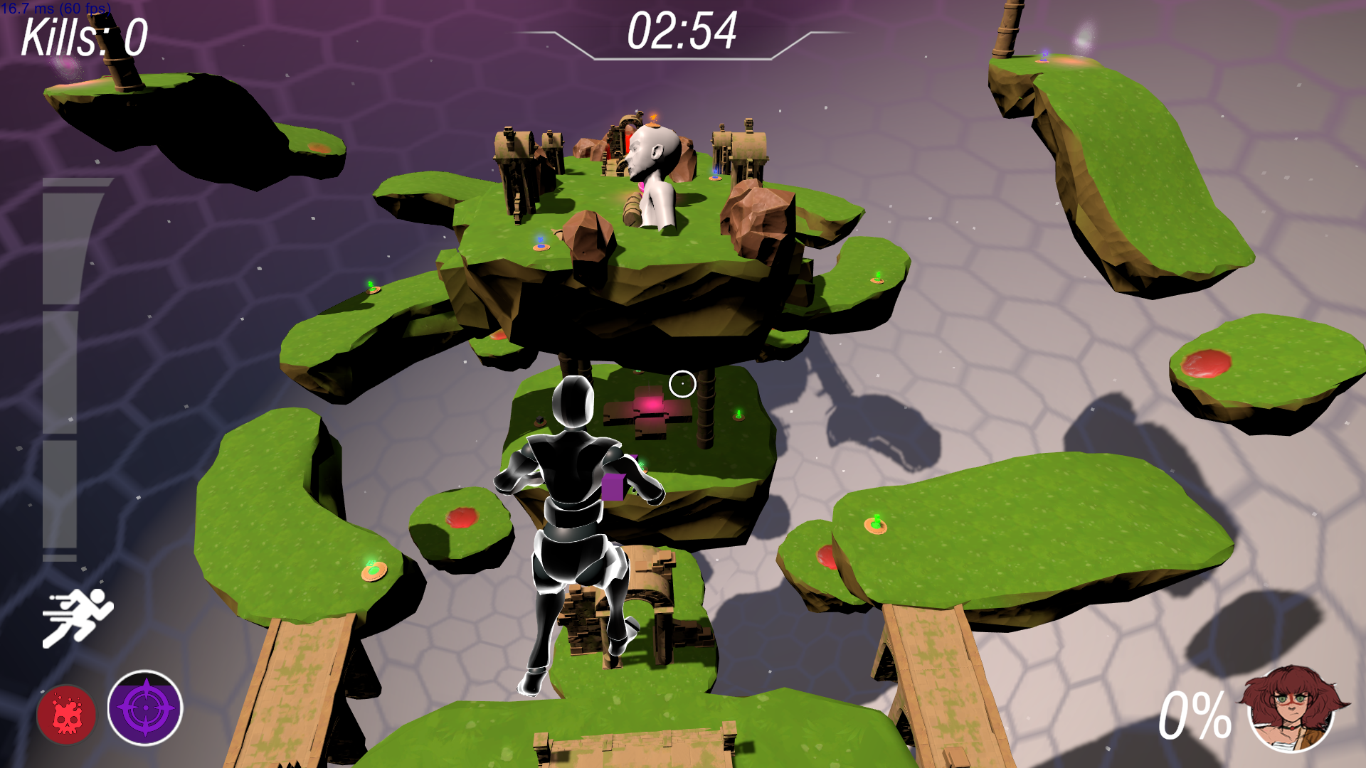 When designing our Capture the Flag mode, we found that the traditional method of CTF doesn't make sense, cause the player dies only when knocked off the arena and the flag had to be reset every time somebody died. So I designed a hybrid mode, where there is only a single flag, that has its own AI. It patrols in an area in the center of a level, and has to be shot by players for it to be stopped and then captured. If a player is knocked back and dies in the spherical void that surrounds the level the flag flies back to the center and starts patrolling again till its captured.