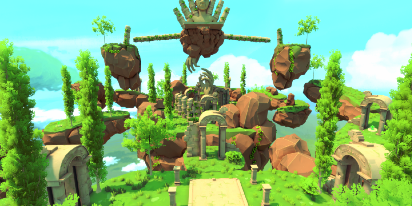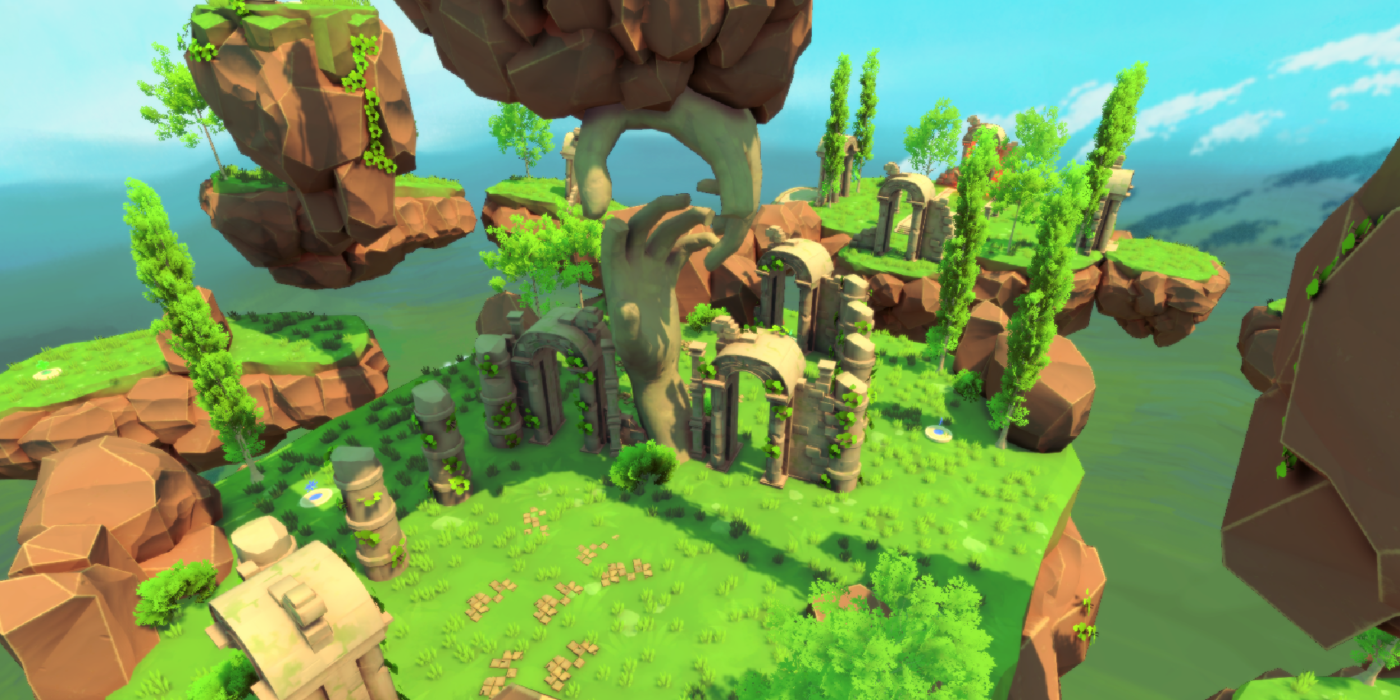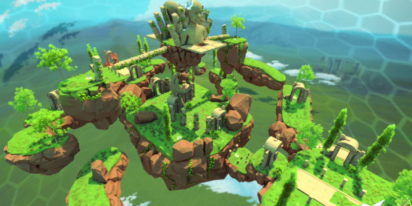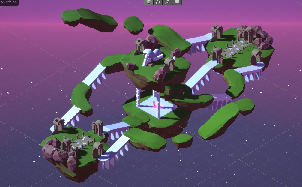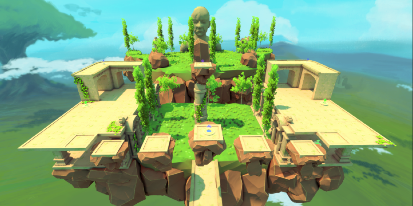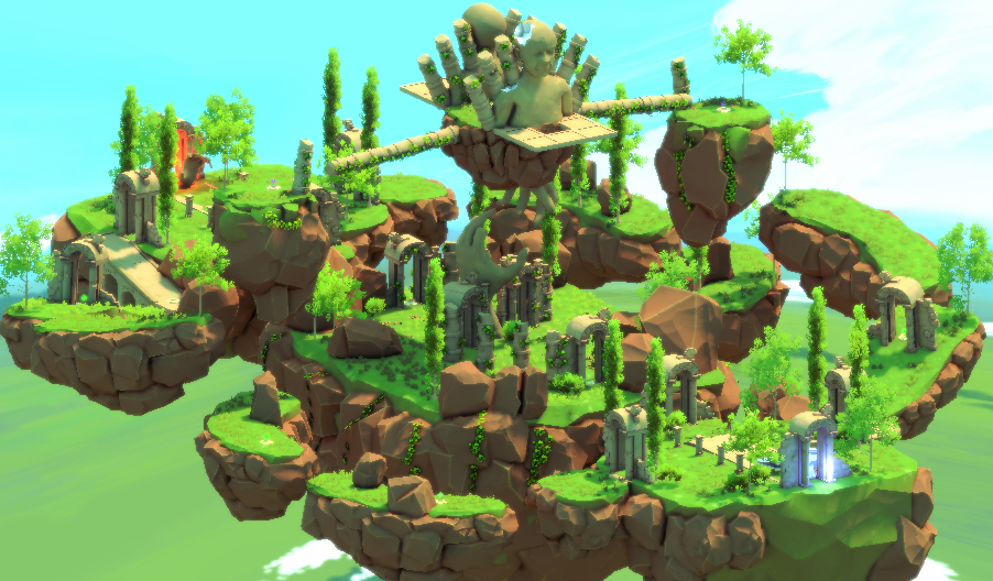 Floating Landmass close to each other, few are connected to each other by wooden bridges or floating pathways, while others are close enough that the player can jump from one to another. Fits up to six players.