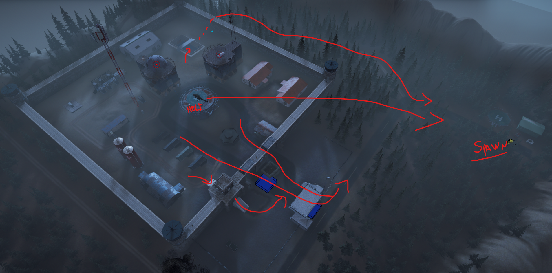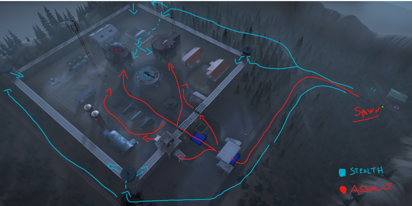 This originally started as a design plan for 2D map. I instead used the research and initial design to make it into a FarCry 5 Arcade level.