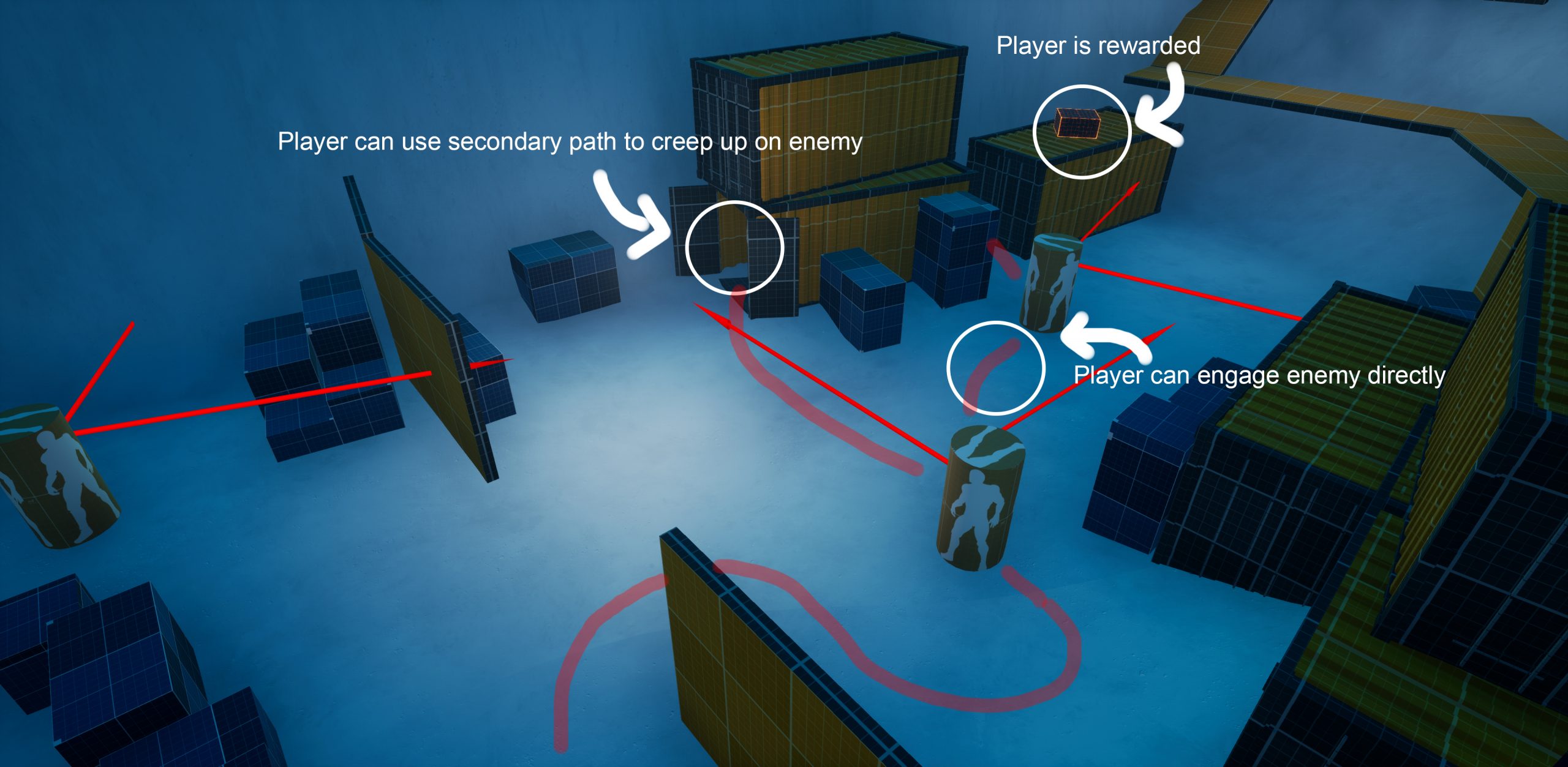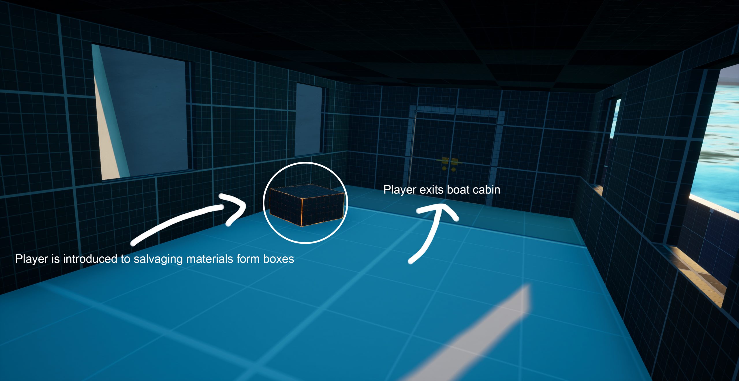 - Collect scrap material from boxes to upgrade weapons.